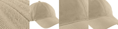 Fabric: 67/33 cotton/poly front panels; 100% polyester mesh mid and back panels Structure: Unstructured Profile: Low Features: Pigment print gives an oiled leather look Closure: Hook and loop