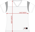 100% polyester heavyweight tricot mesh body * 90% polyester/10% spandex 2-ply yoke, sleeves and side inserts * Updated fit to accommodate traditional and slimmer pads * Outside locker label * V-neck collar with center front insert * Contrast color cap sleeves with contrast color half-elastic cuffs for secure fit over pads