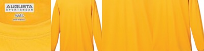 100% polyester wicking knit with color secure(r) technology that helps prevent dye migration * Wicks moisture * Tear away label * Two-button placket * Raglan sleeves * Longer length